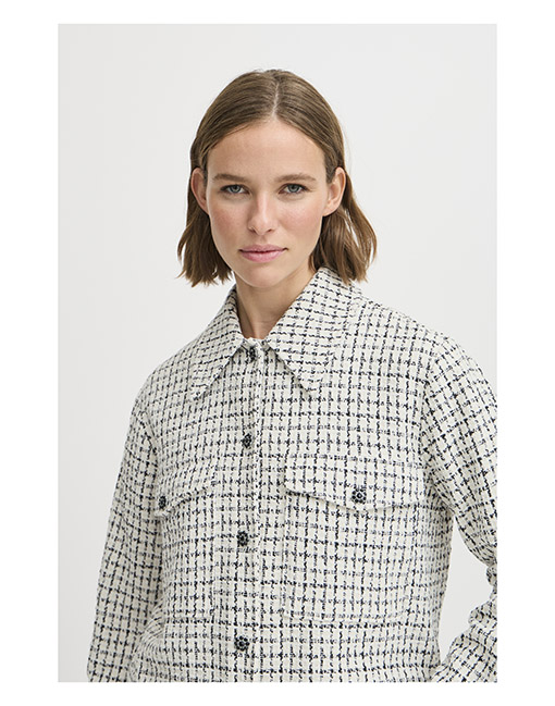 BYDAMODA JACKET kombinerer et klassisk ternet design med en moderne silhuet, der gør den perfekt til både hverdag og festlige anledninger. Jakken er fremstillet i lette materialer, som sikrer komfort hele dagen. De praktiske lommer og knaplukning understreger dens funktionalitet uden at gå på kompromis med stilen. Den kan styles med alt fra jeans til kjoler – denne jakke passer nemt ind i din garderobe som en tidløs favorit.